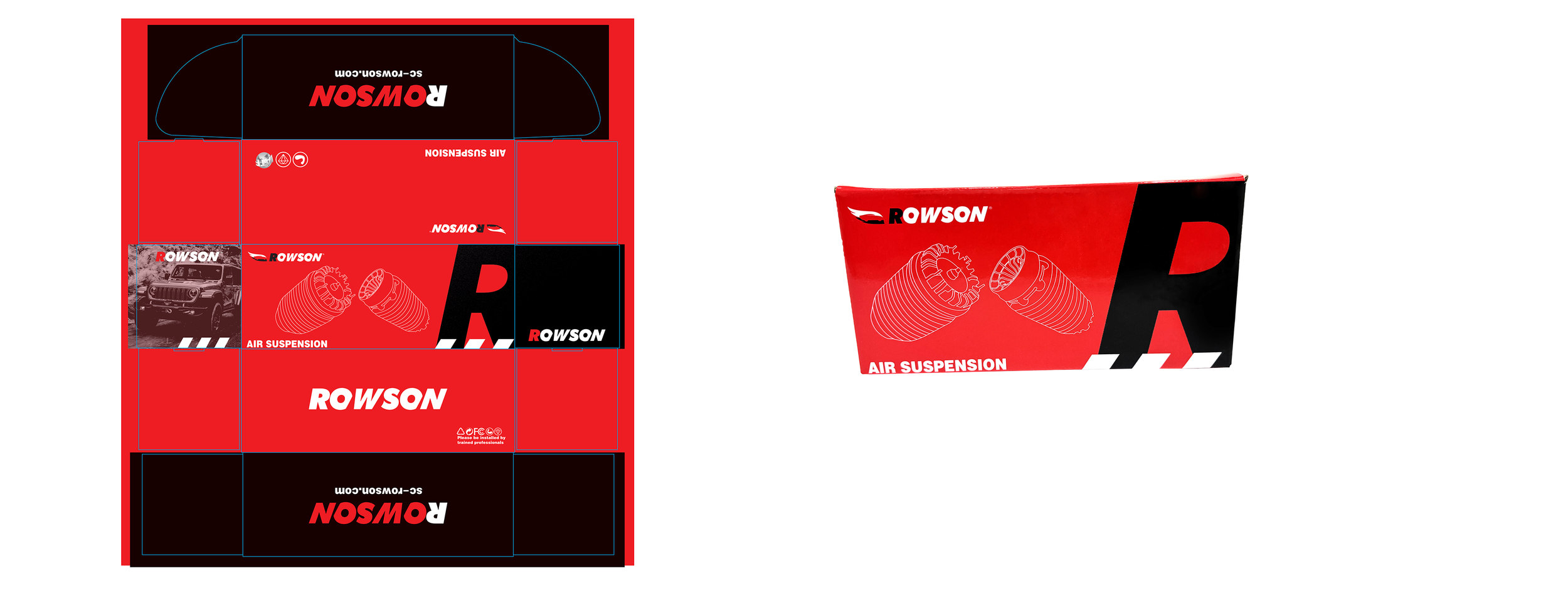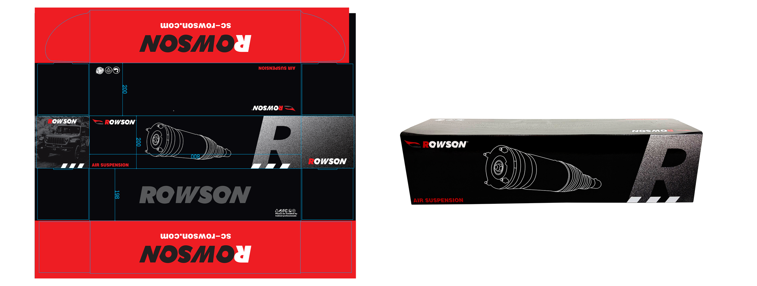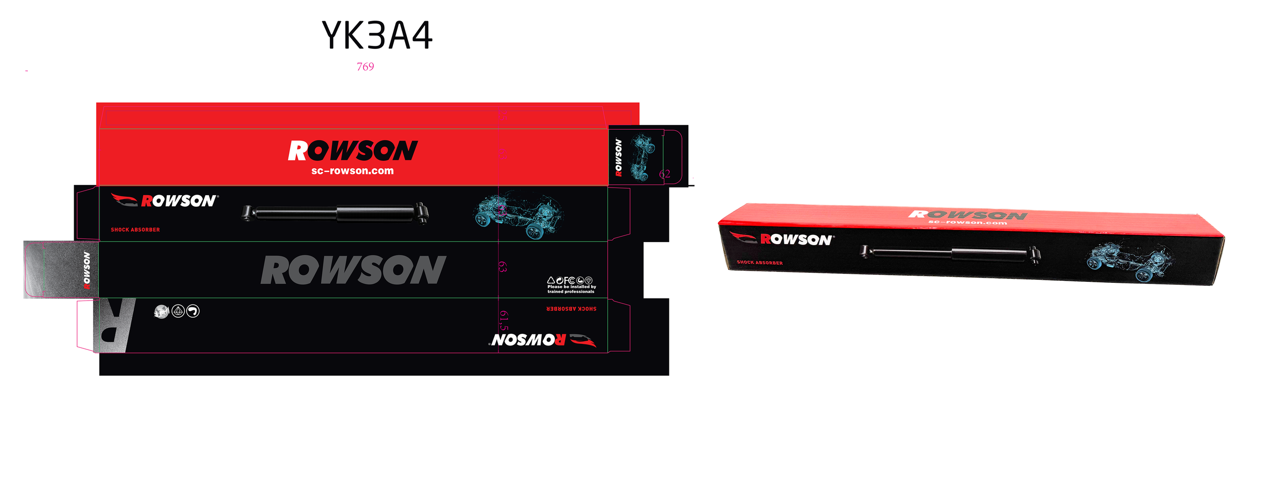 ROWSON Brand Color Box Expanded view for ROWSON Shock absorber Box(Front). Customize Brand Box is acceptable. Welcome to inquiry and to know more.