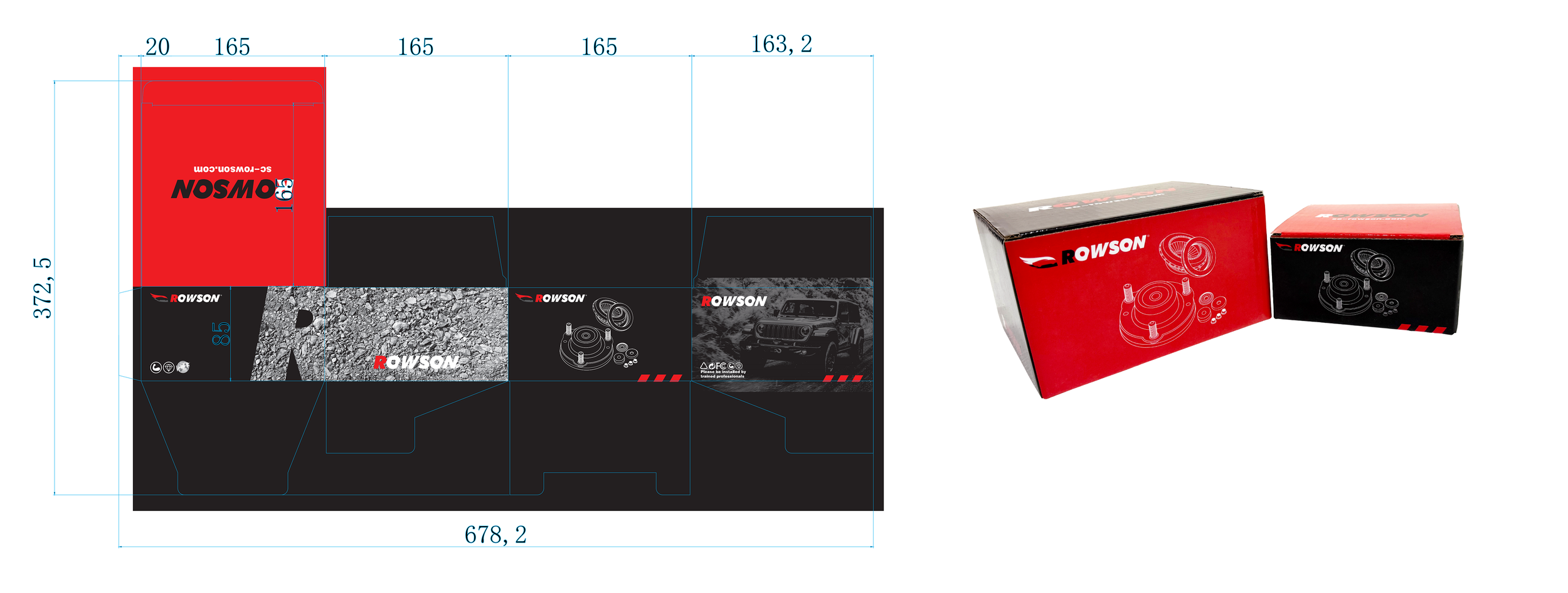 ROWSON Brand Color Box Expanded view for ROWSON Strut Mount Box.Customize Brand Box is acceptable. Welcome to inquiry and to know more.
